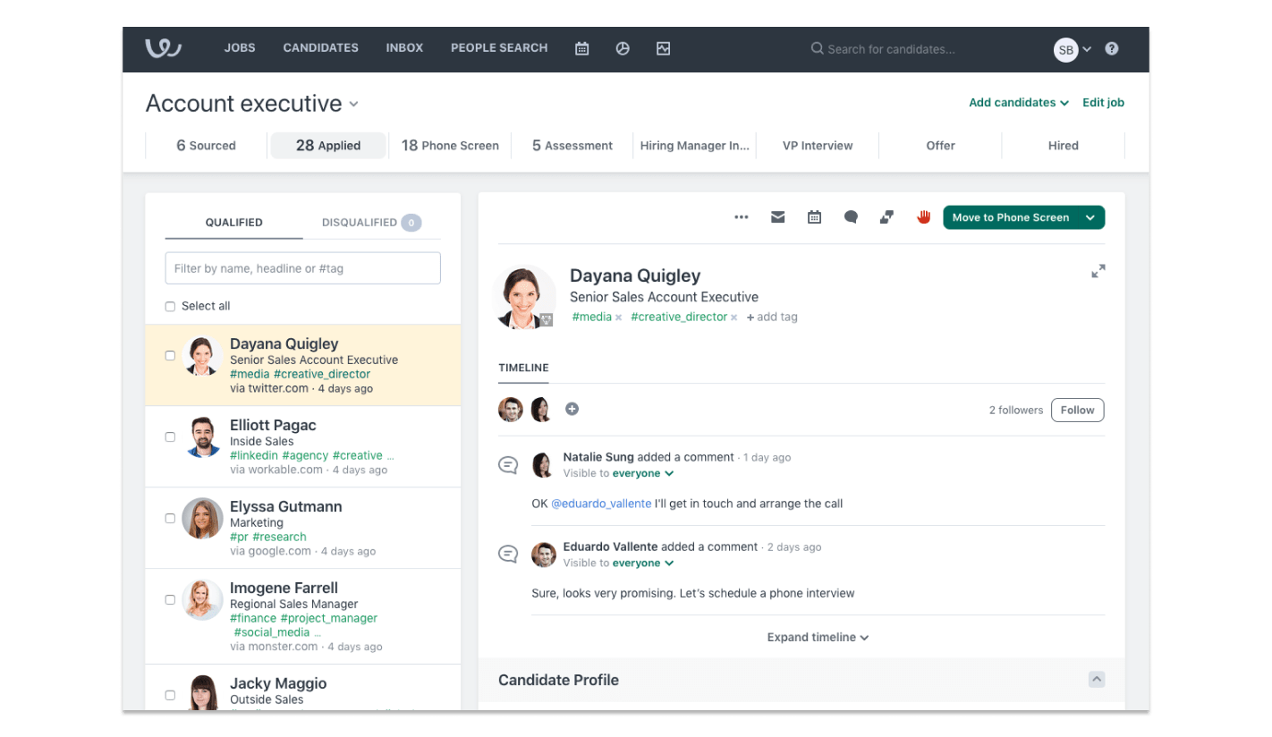 “I love that you can easily create applicant pipelines that are customizable and automatically move applicants through the stages of recruitment.” (Source: G2)