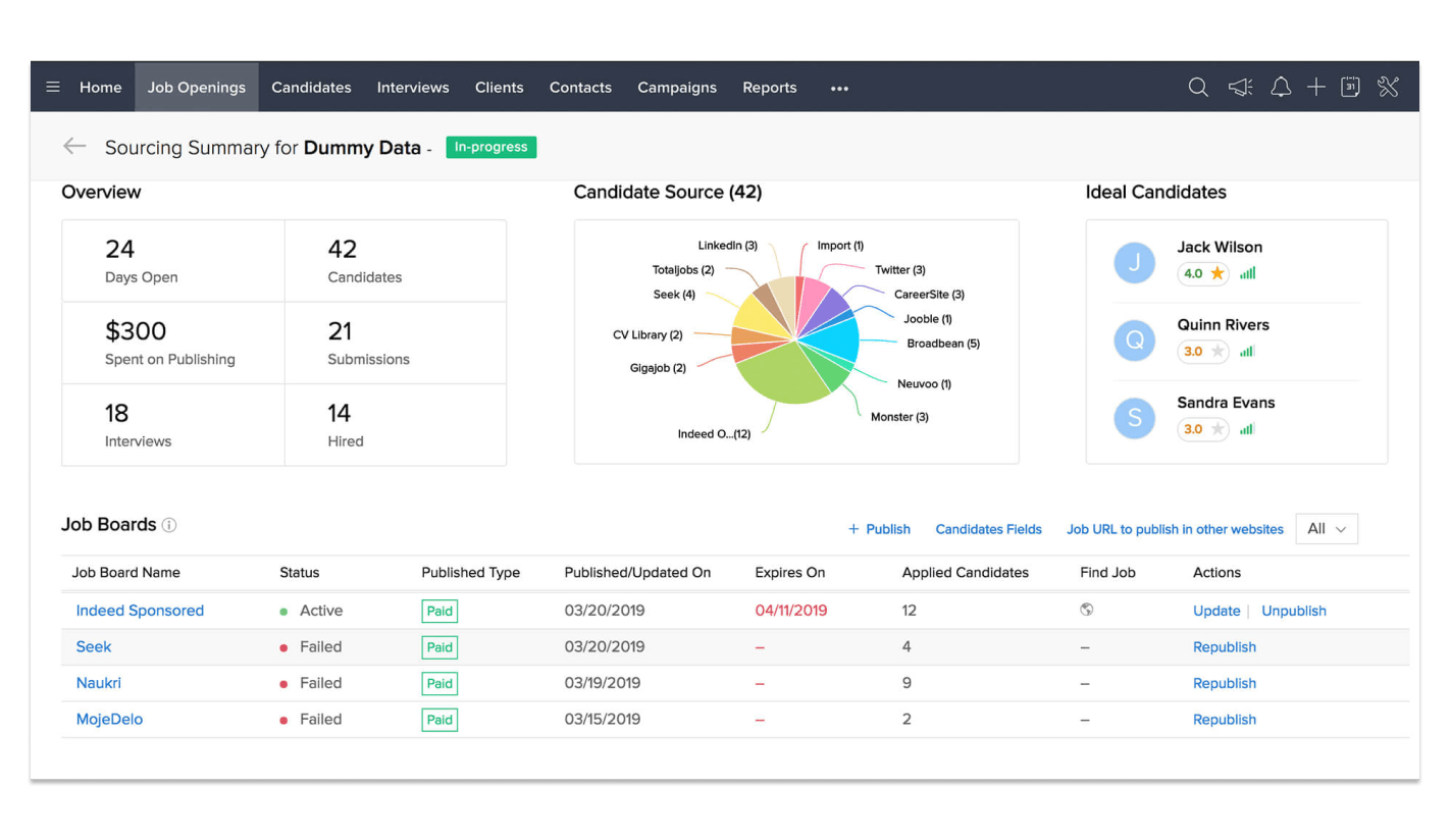 Zoho Recruit:Versatile tool with AI candidate ranking and extensive reporting