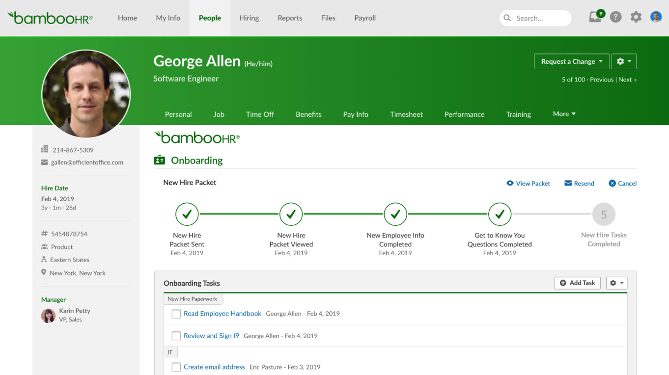 BambooHR : Offers a comprehensive HR software solution that simplifies benefits administration alongside employee data management, hiring, and performance tracking.