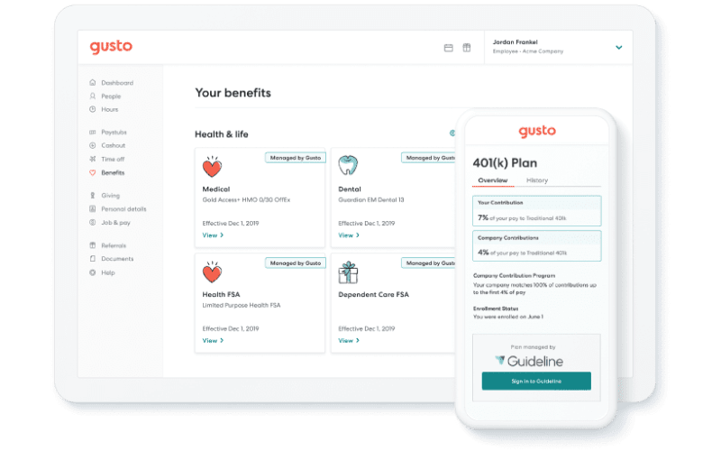 Gusto : Streamlines payroll, benefits, and HR management for small and medium-sized businesses.