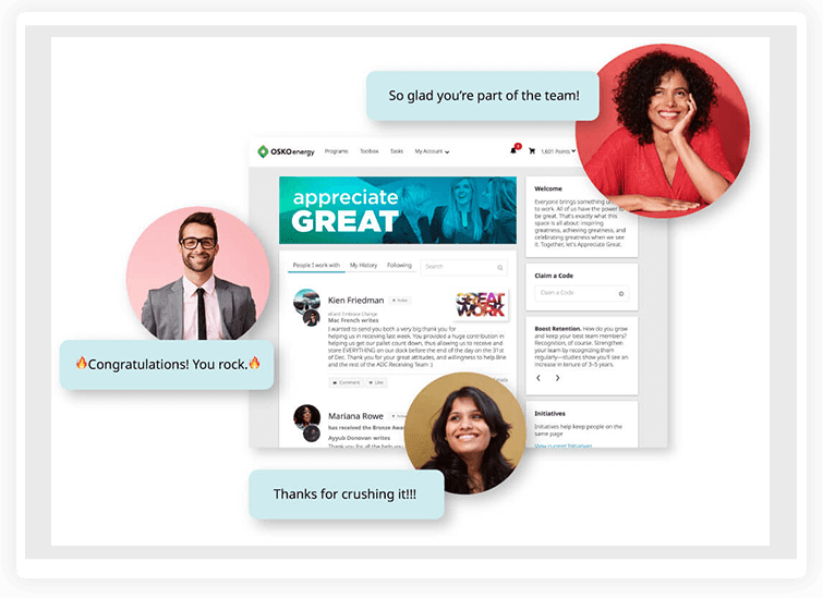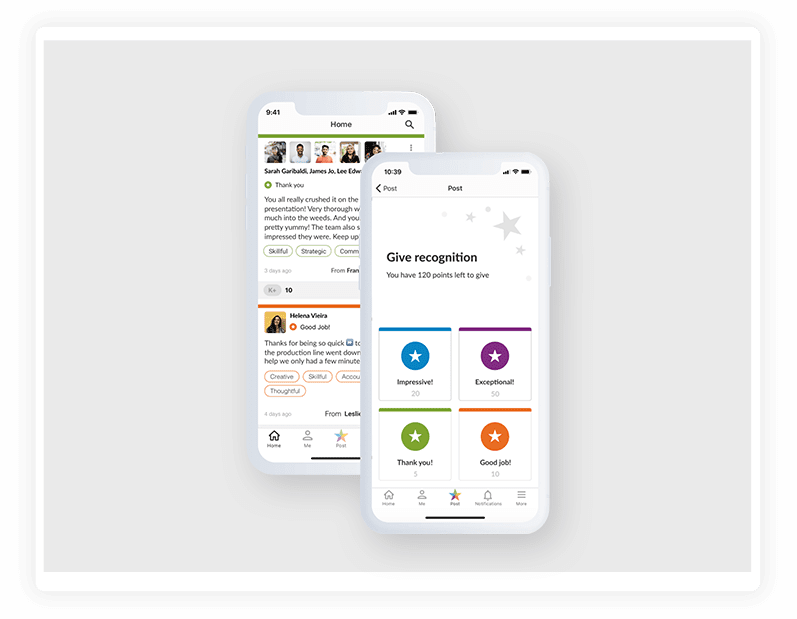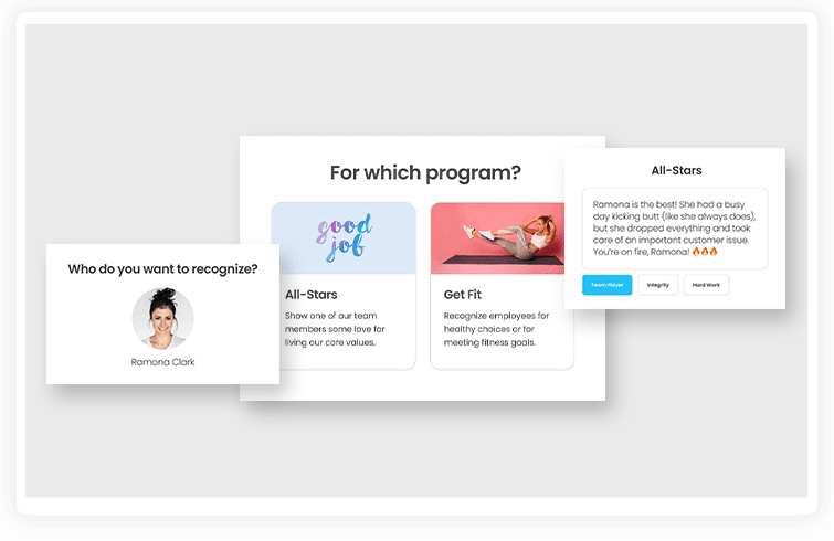 The platform allows value-based recognition & custom rewarding.