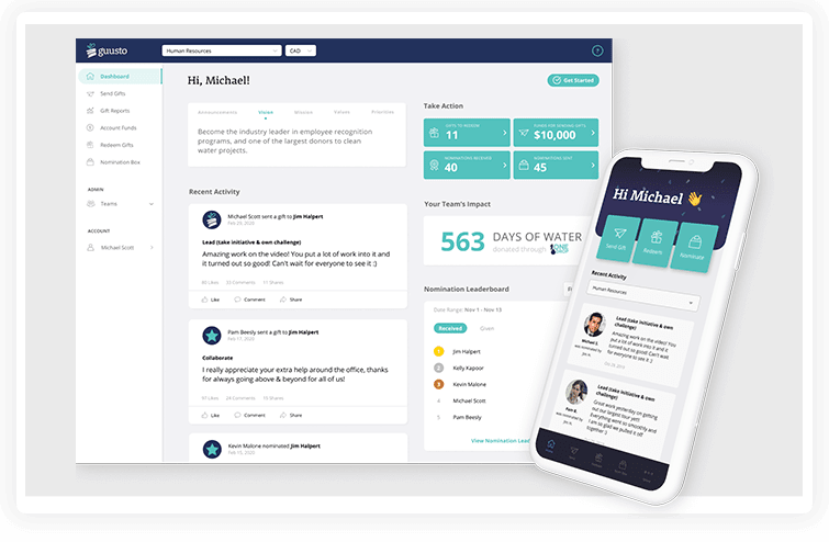 Guusto helps organizations create unique and purpose-driven recognition programs for their employees. Its point-based redemption system allows full credit reimbursement on unclaimed gifts. Furthermore, employees can utilize the pay-forward option to transfer gifts to their colleagues. Moreover, for every gift rewarded, Guusto donates one day’s worth of clean water.