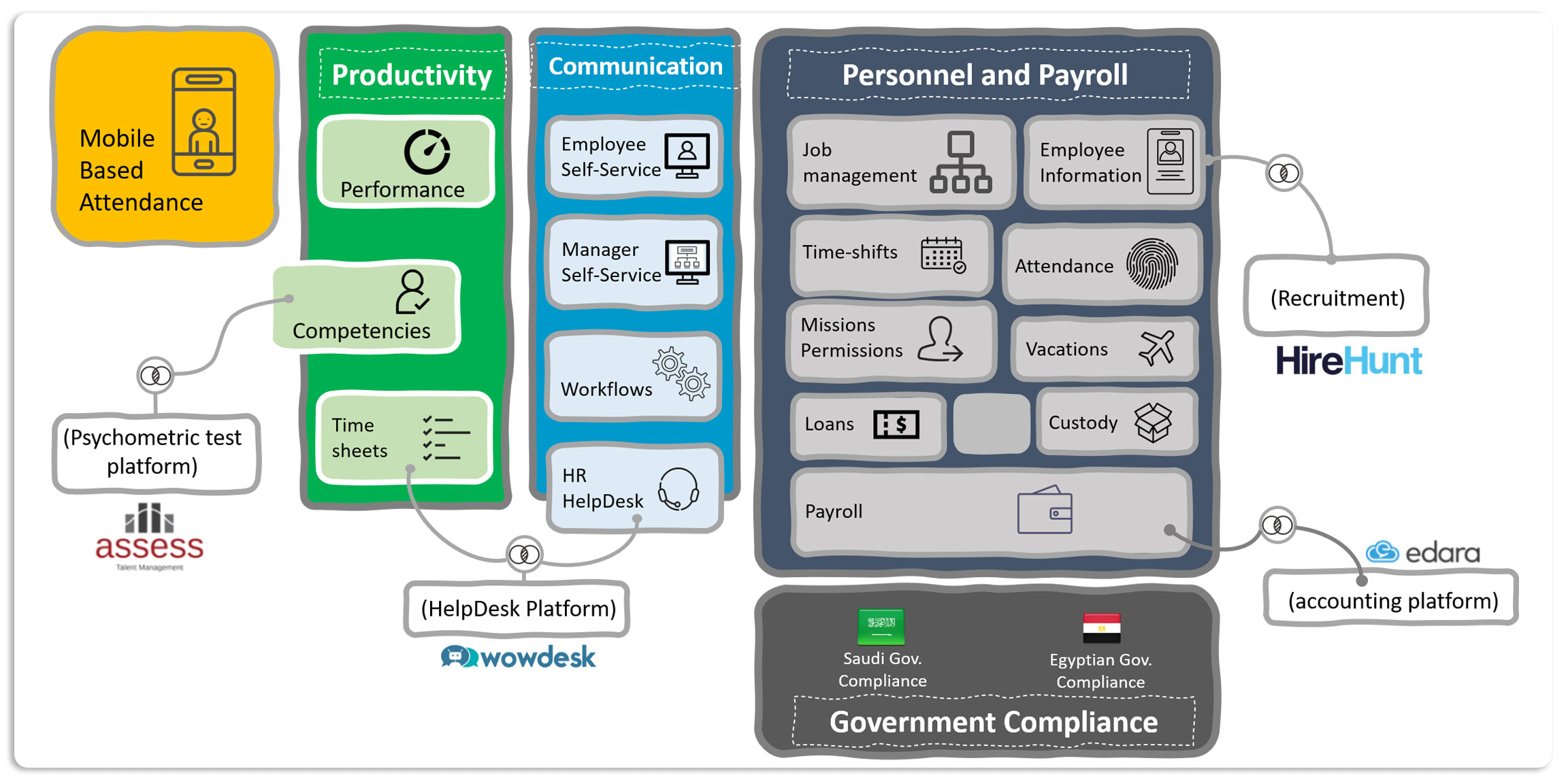 Integration Capabilities: Integration with company’s HCM/HRMS system and communication tools such as Teams and Slack.