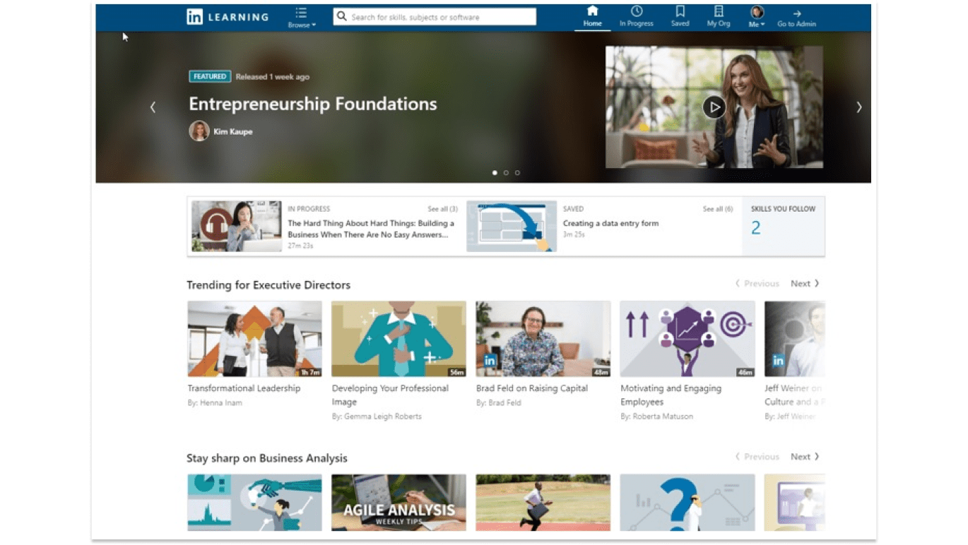 LinkedIn is widely accepted for its authenticity and content quality. It also allows an organization to upload its content and make it accessible to its in-house users. With strategic insights and data, LinkedIn Learning for Business helps organizations understand in-demand skills for today and the future, ensuring that employees are equipped to meet evolving business needs.