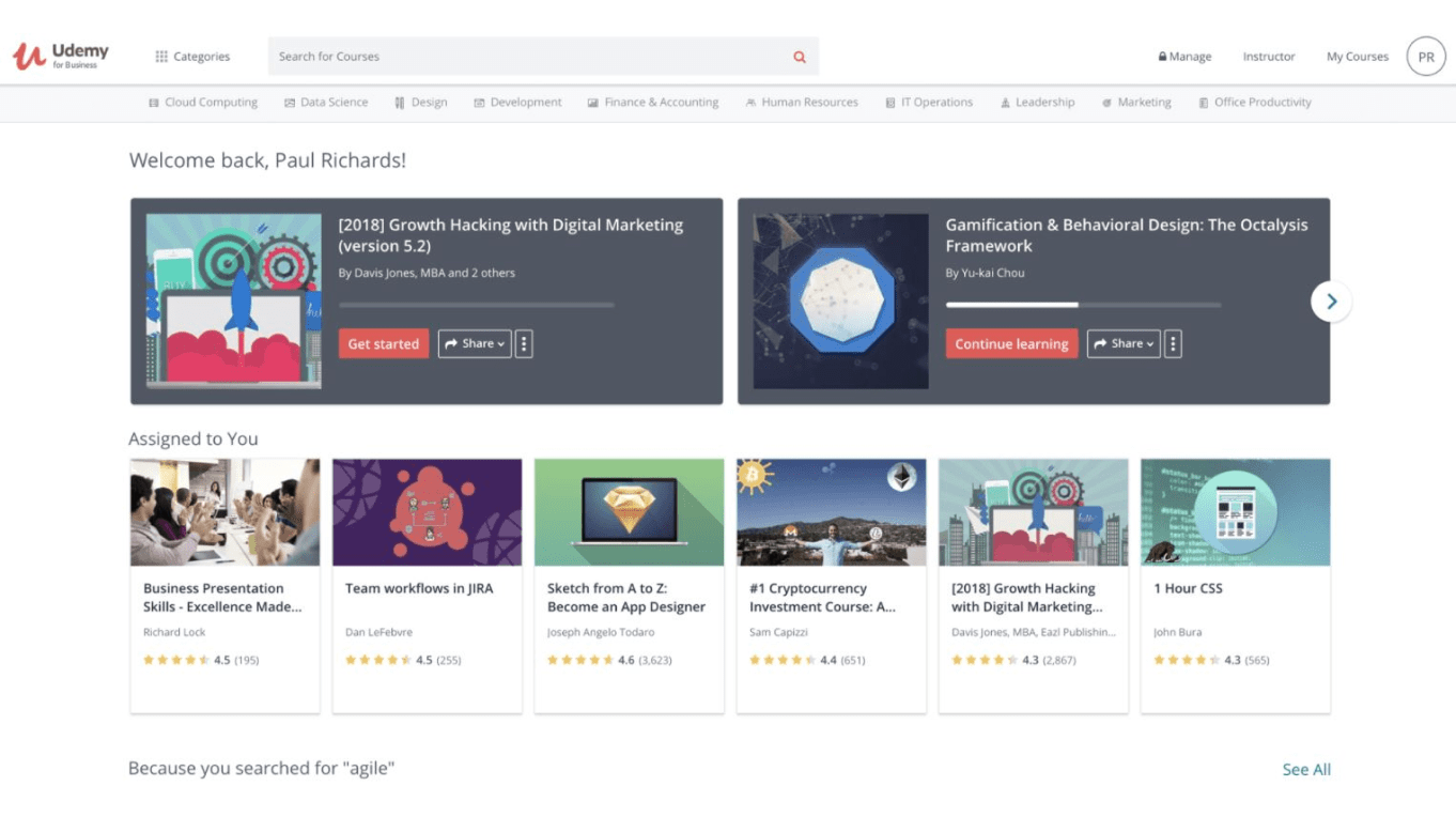 Udemy Business is an innovative learning platform that offers a comprehensive suite of engaging, on-demand, immersive, and cohort-based learning solutions tailored to modern workplaces. It is one of the popular LXPs that provide tools and strategic partnerships to build a future-ready workforce, increase employee learning and engagement, and drive business results.