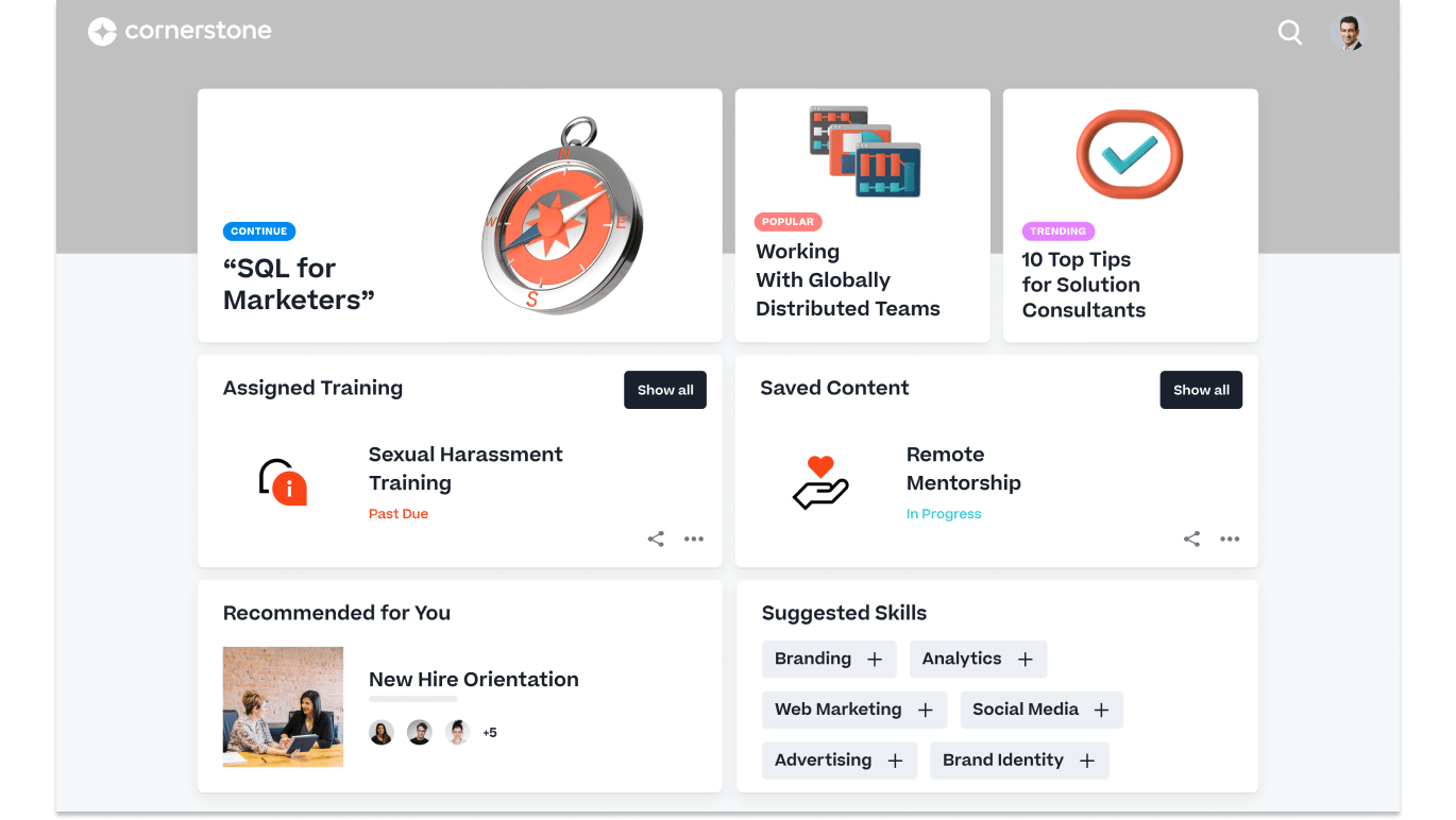Cornerstone Learning assists in establishing an atmosphere that enables employees to be successful and productive. It helps businesses improve their learning and people development strategies by placing talent management, LMS, LXP, and content distribution in a one-stop place.