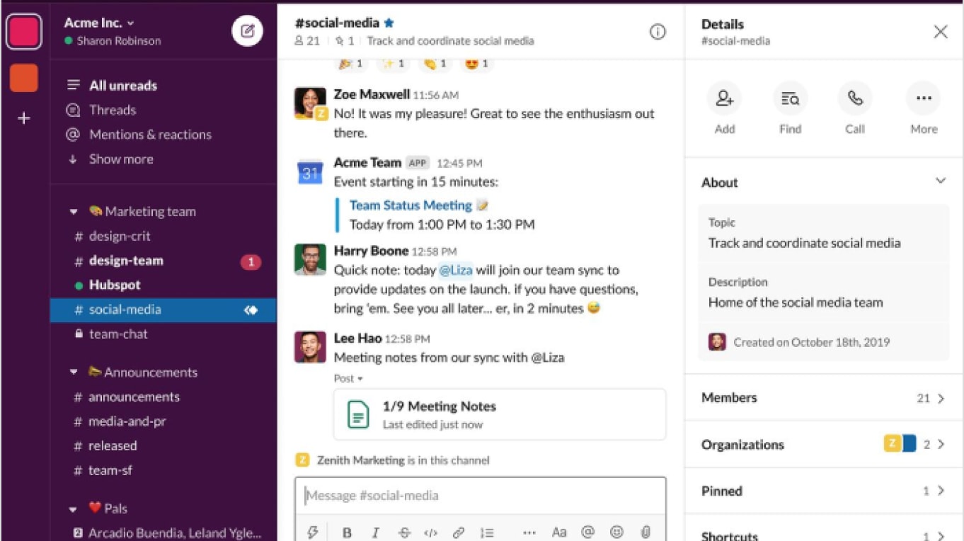 Slack : Instant messaging platform with robust real-time collaboration features and integration
