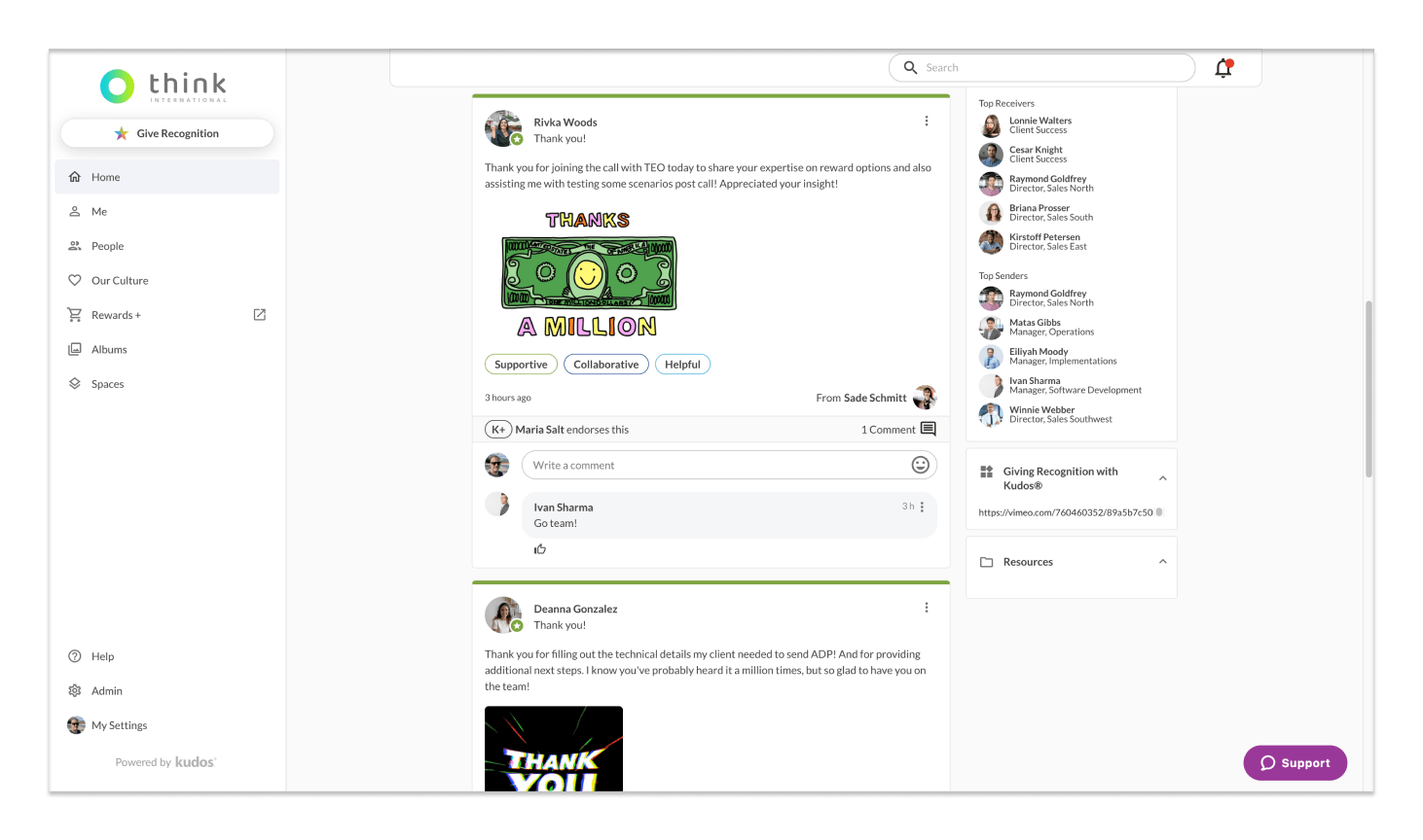 Proporciona un canal de comunicación abierto donde los empleados pueden reconocer públicamente o en privado a sus compañeros.