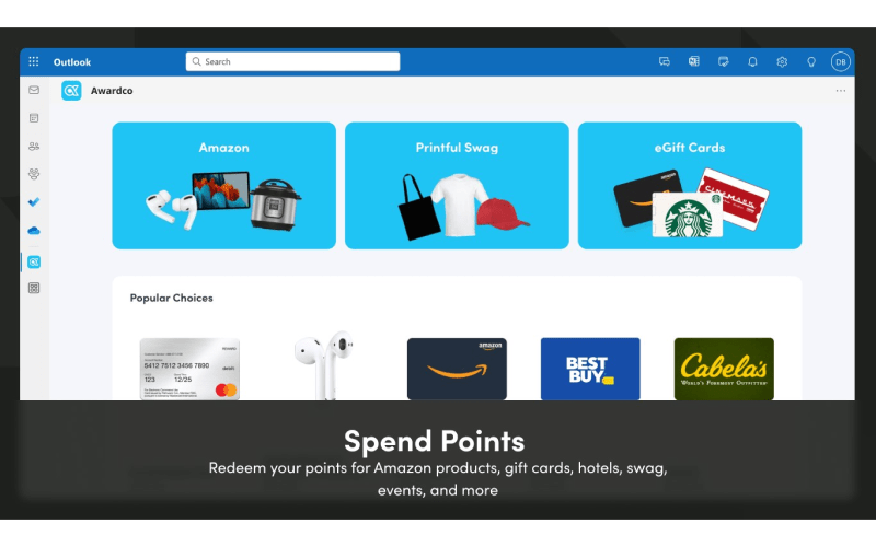 Awardco es una plataforma de recompensas conocida por su catálogo integrado en Amazon, pero esta herramienta hace mucho más. También cuenta con todas las funciones esperadas en una plataforma de reconocimiento, como un feed de redes sociales, hace hincapié en la apreciación entre compañeros y ofrece un enfoque general hacia el compromiso de los empleados.