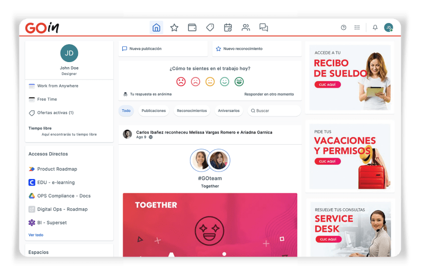 Gointegro: Plataforma de compromiso de los empleados que ofrece soluciones de reconocimiento social y bienestar.