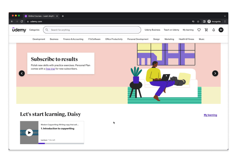 Udemy Biz: Proporciona a tu equipo las habilidades más demandadas a través de una amplia biblioteca de cursos impartidos por expertos.
