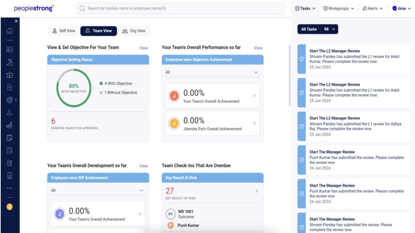 PeopleStrong es una plataforma integral de tecnología de RR.HH. diseñada para agilizar y mejorar diversos procesos de recursos humanos. El sistema de gestión del rendimiento de PeopleStrong permite a las organizaciones optimizar y mejorar las evaluaciones de rendimiento, el desarrollo de los empleados y el establecimiento de metas.