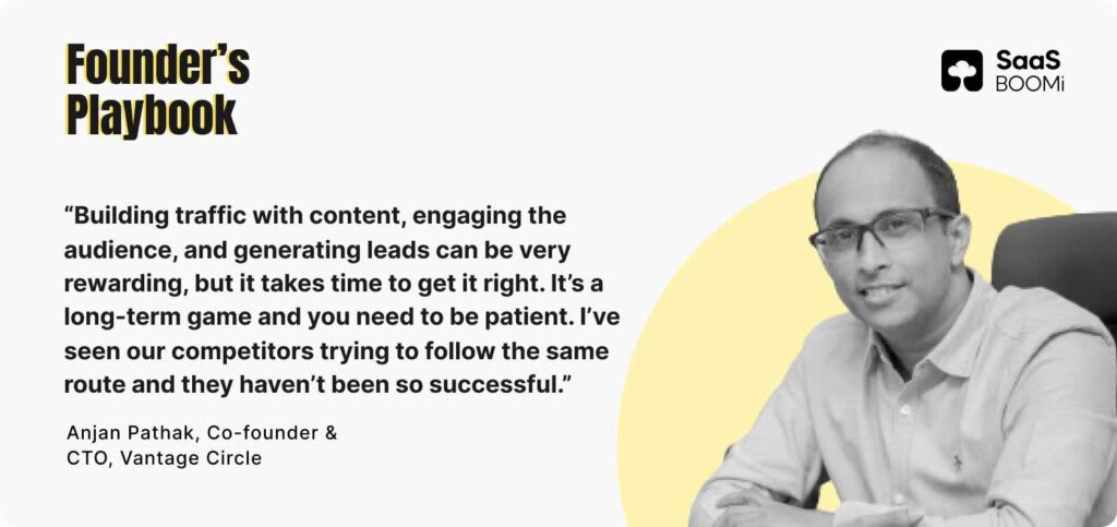 In Vantage Circle’s case, Pathak himself took charge of the content marketing program, despite being the CTO. He was encouraged by what he saw in six months, and committed all the resources needed to make it work.